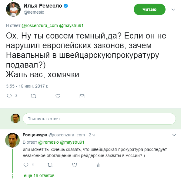 В Твиттере вышла активная переписка с Ильей Ремесло. Вот некоторые твиты.