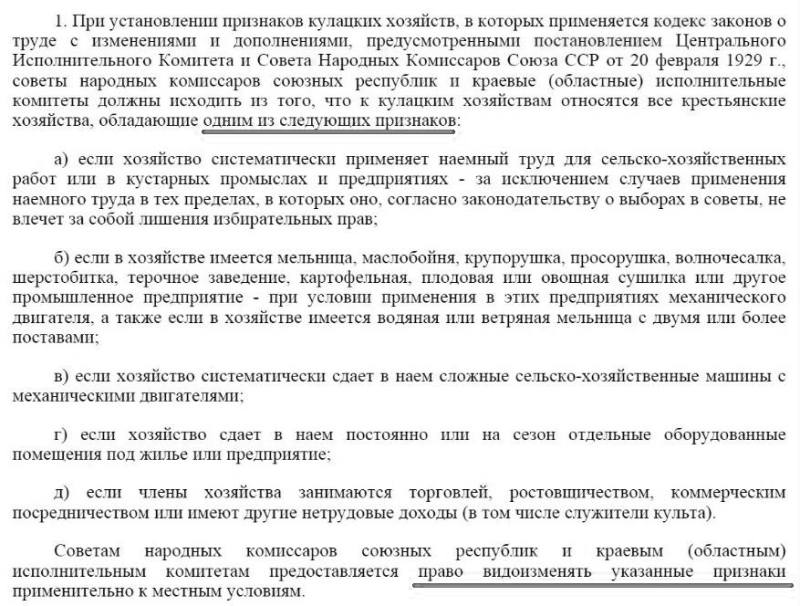 У вас логика вообще не работает. Я вам даю документ 30-х годов про признаки кулацких хозяйств, вы мне про "мироедов" 1887 года. Вы знаете зачем придумали уголовный кодекс? Это правила, по которым живет общество. Эти правила должны опираться на здравый смысл и справедливость, не должно быть фашистский статей. Но в любом случае с уголовным кодексом человек хотя бы знает что ему позволено а что нет, при данной власти. Кулаков репрессировали вне закона.