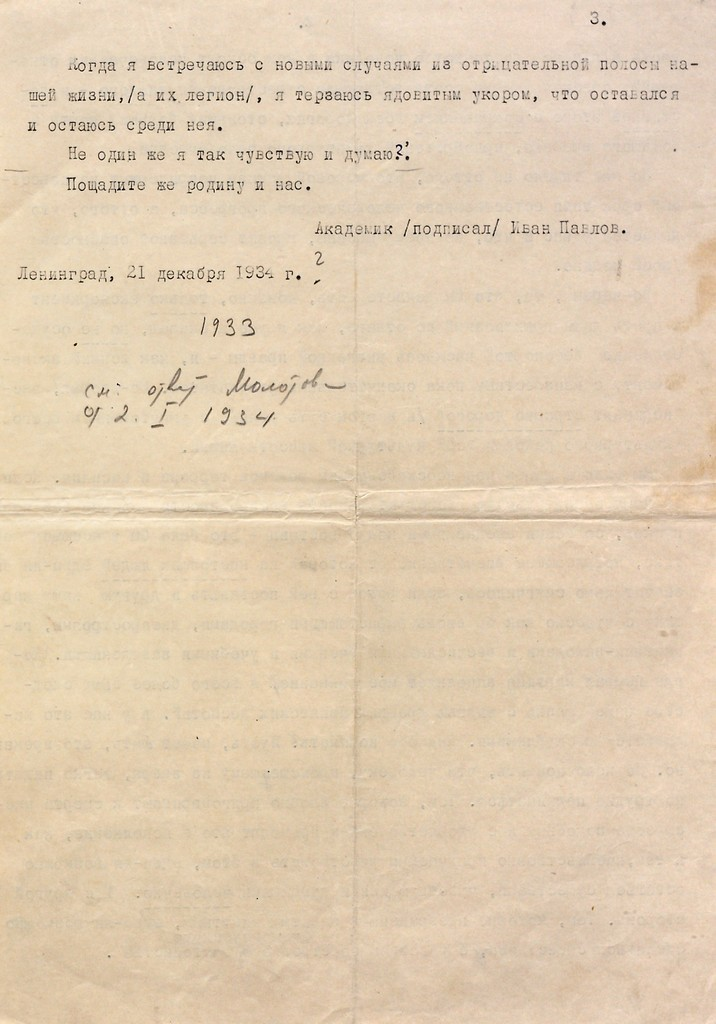Так, уже 2 января 1935 года, тогдашний председатель СНК СССР, В. Молотов (тот самый, кто подписывал пакт с Риббентропом), написал ответ академику Павлову: