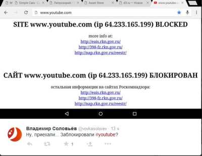 Сейчас цензоры уже всерьез занялись за Youtube: сообщения о блокировках поступают от многих пользователей.