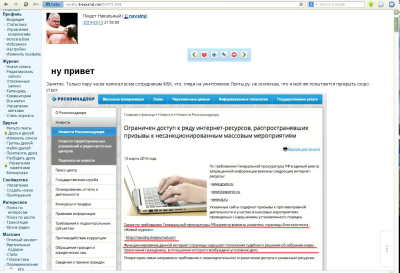 В четверг 13 марта Федеральная служба по надзору в сфере связи, информационных технологий и массовых коммуникаций по требованию Генеральной прокуратуры России внесла в реестр запрещенных ресурсов блог известного российского оппозиционера Алексея Навального в сети livejournal (Живой Жукрнал). В Роскомнадзоре уточнили, что основанием для этого стало нарушение его владельцем решения суда, согласно которому Навальный находится под домашним арестом и не имеет права пользоваться средствами связи, в том числе Интернетом.