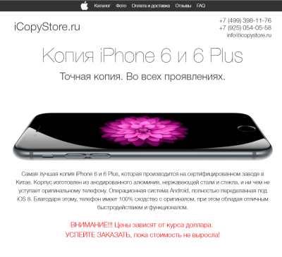 Сайт продавал копии Iphone 6 и Iphone 6 plus.