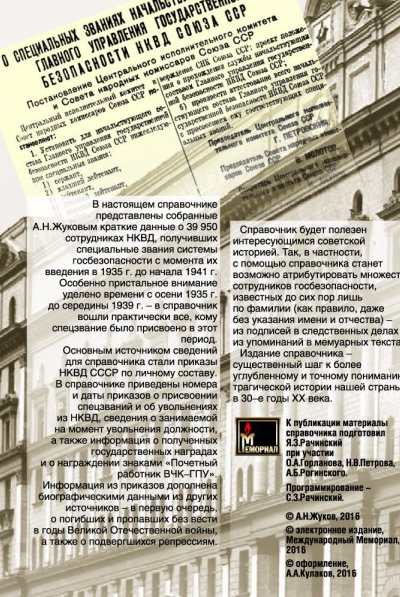На указанном сайте в формате электронной энциклопедии размещен справочник, собранный Андреем Жуковым, в котором содержатся подробные сведения о почти о 40 тысячах сотрудниках НКВД, в том числе о присвоении званий, занимаемых должностях, полученных наградах и т. д. Получить информацию о том, чем именно занимался конкретный человека из базы невозможно, однако чекисты и их потомки выражают опасение, что в ней могут появиться и другие данные.