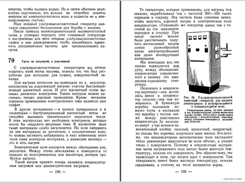 Мы не знаем о каком именно устройстве шла речь, ведь нагревать еду могли и ультракоротковолновые ламповые генераторы. Кто первым додумался нагревать таким образом еду (если пишут, что Спенсер был не первым), тоже не ясно. Потом попробую поискать в англоязычном Интернете, были ли похожие эксперименты с едой на Западе до Спенсера.