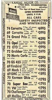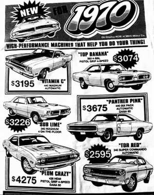 Американские рекламные объявления о продаже автомобилей 1970-х годов.